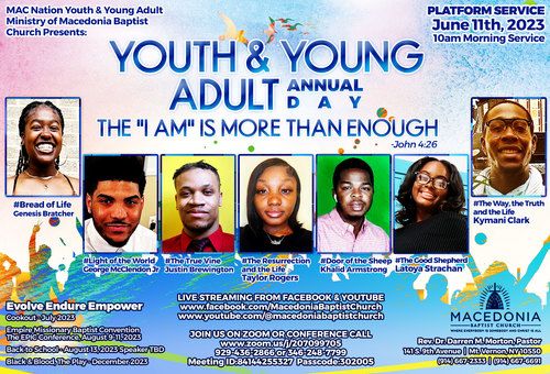 MBC Apple Picking DayThe SO SEND I YOU, INC. Dialogue Series are back in sessionThe BIG E Afterschool ProgramMacedonia Baptist Church 2023 HomecomingNew Members GatheringAppreciation DayRev. Dixon Revival SeriesOctober 2023 Pray Calendar and LessonThe Promises of God Prayer ServiceEarly Bird SERVICE