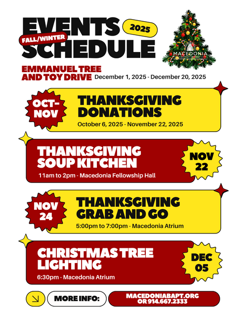 #MacedoniaBaptist #FallWinterEvents2025 #ChurchCommunity #GiveThanks #CelebrateChrist
